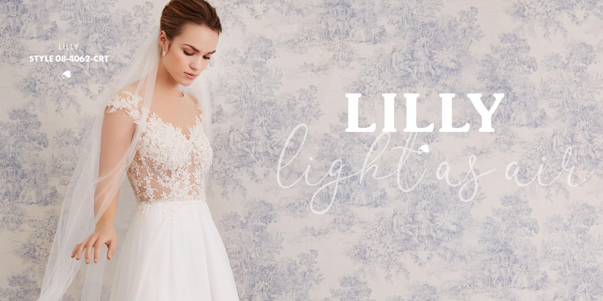 Skira, bekväma bröllopsklänningar inspirerade av feminina silhuetter med vågade detaljer. Lätta tyger som samlas i svängande kjolar med dolda fickor. Glamorösa nyheter i form av ett nytt material med en mjuk och glänsande metalltråd.