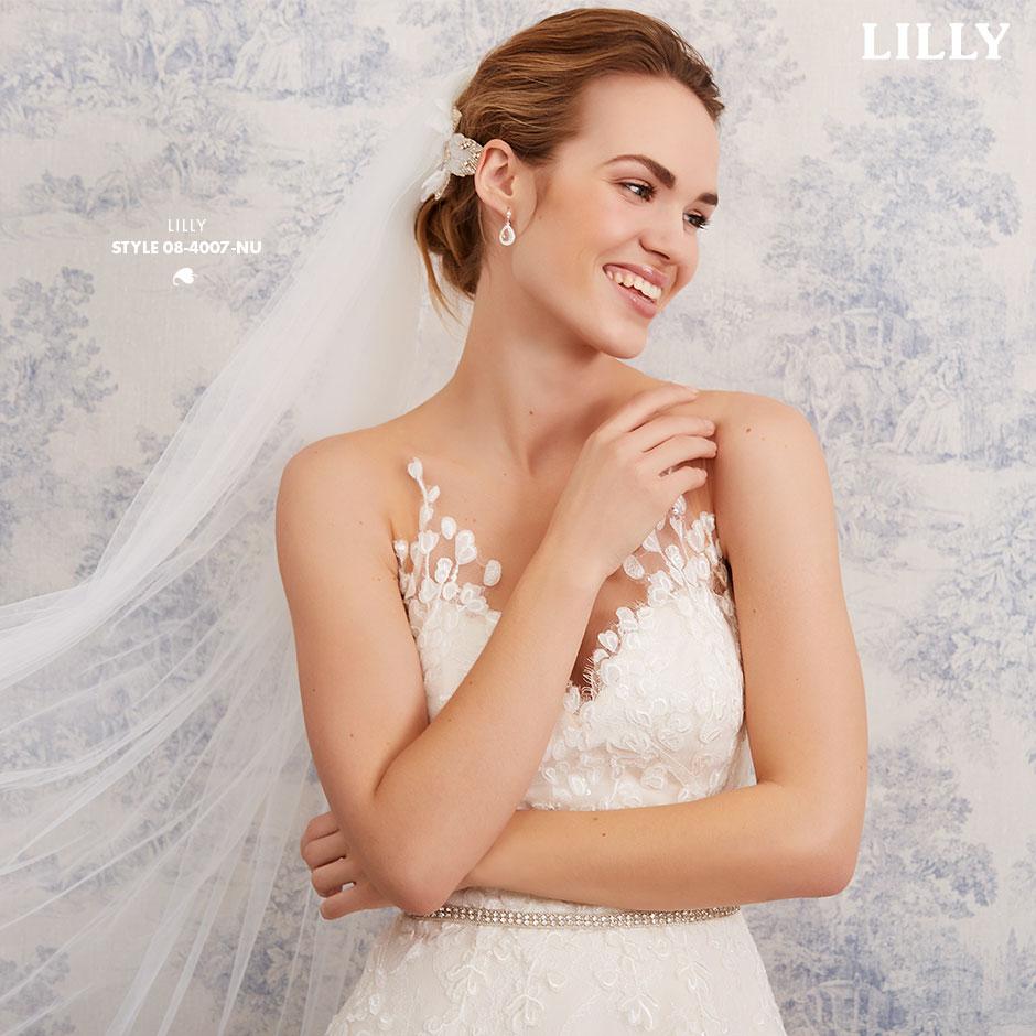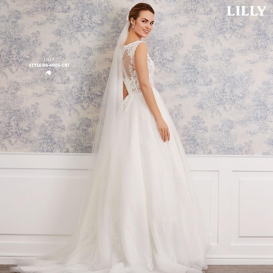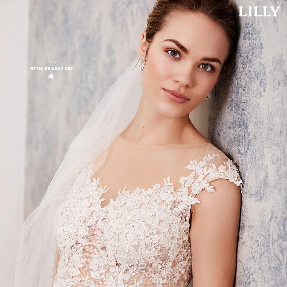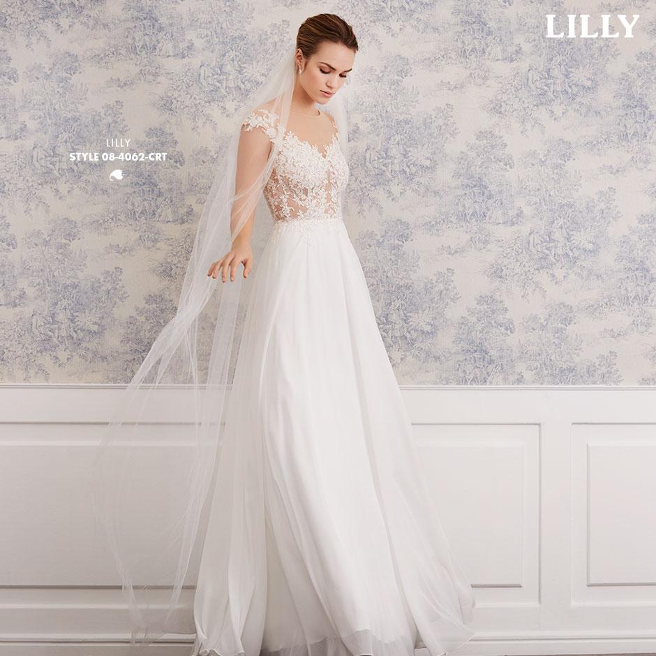 En ultrafeminin bröllopsklänning – med en underbar kjol i mjuk georgette och semitransparent spetsöverdel med bedårande lockärmar.